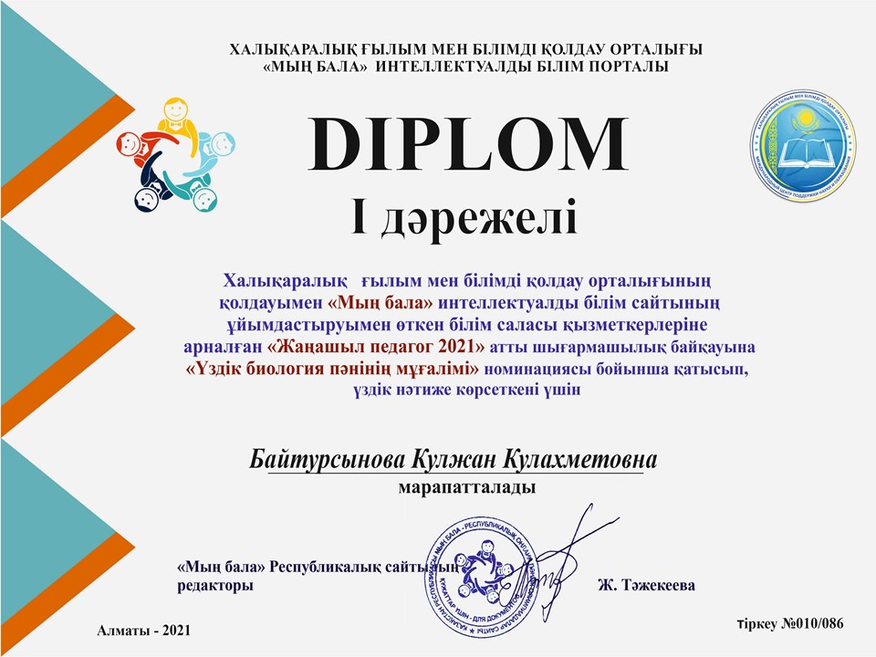 Колледж оқытушылары Байтұрсынова Г, Оразбекова К, Султанмурадов Б, Дүйсенбаева М Халықаралық ғылым мен білімді қолдау орталығының ұйымдастыруымен өткен «Жаңашыл педагог -2021» атты шығармашылық байқауына қатысып, жүлделі орындарды иемденді |
