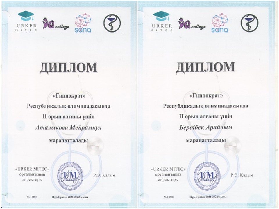 2021-2022 оқу жылында колледж студенттері «Гиппократ» олимпиадасына белсенді қатысты. Жалпы саны 108 студент қатысып жүлделі орындар алып белсенділік танытқаны үшін колледж Алғыс хат пен «Гиппократ» кубогымен марапатталды.